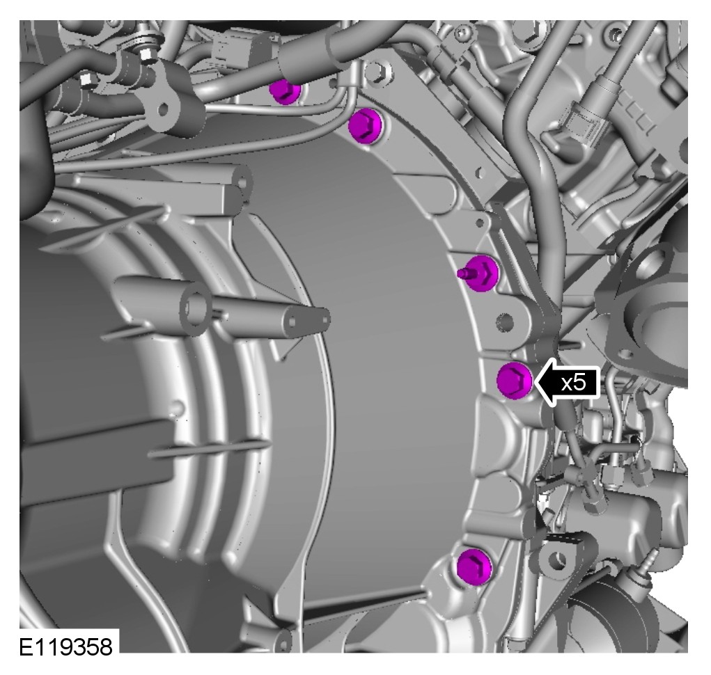 Make sure that the alignment mark is visible through the inspection hole on removal of the last torque converter bolt.