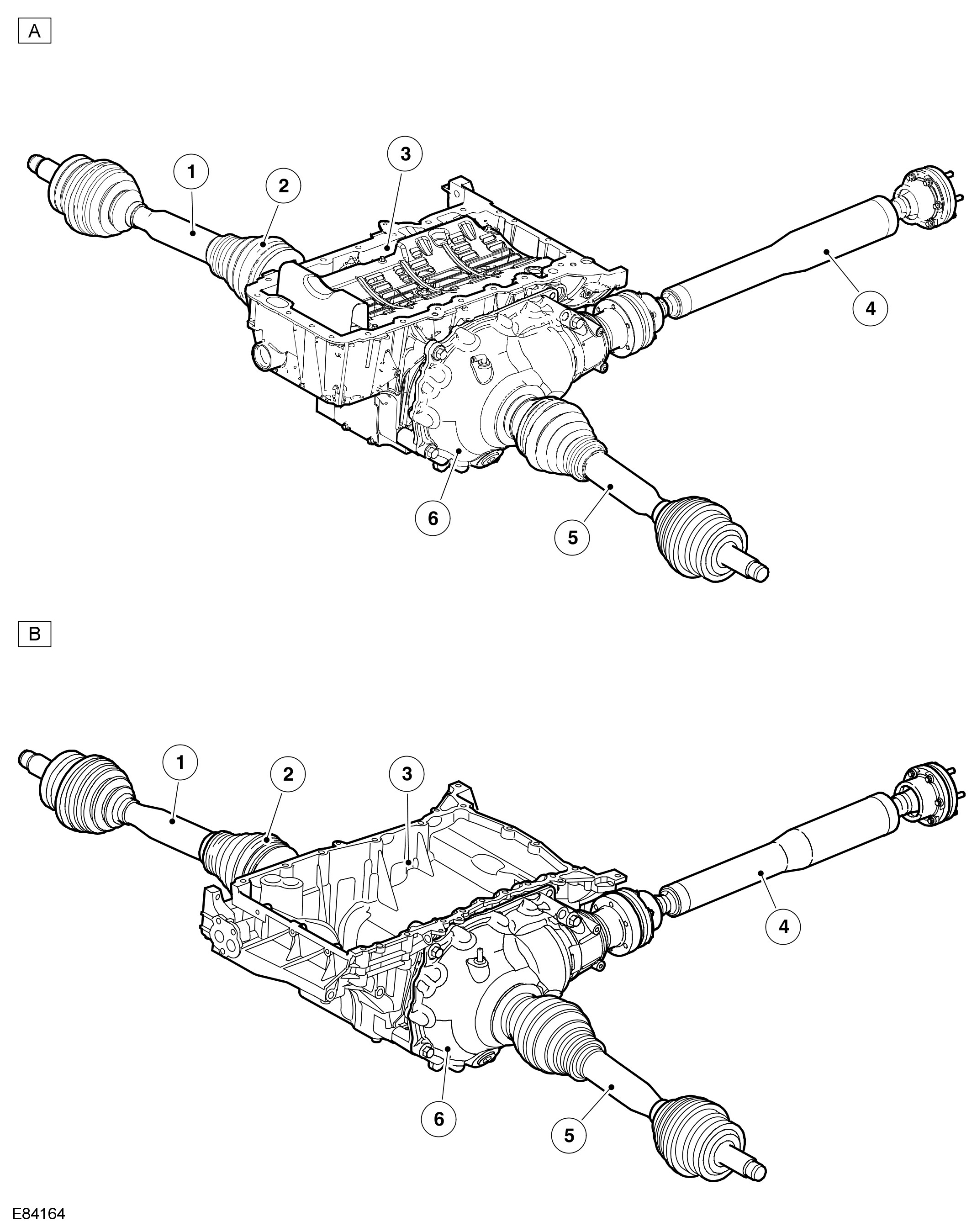 The front differential is mounted on the LH side of the vehicle sump. The sump has a cast tube through it, which allows for the fitment of the RH drive halfshaft and separates the engine oil from the differential oil. The differential unit is secured to the engine sump with 4 bolts. The bolts pass through lugs in the differential casing and are secured into threaded holes in the sump. An O-ring seal is fitted to the casing and locates in the sump to provide a seal between the casing and the sump.
