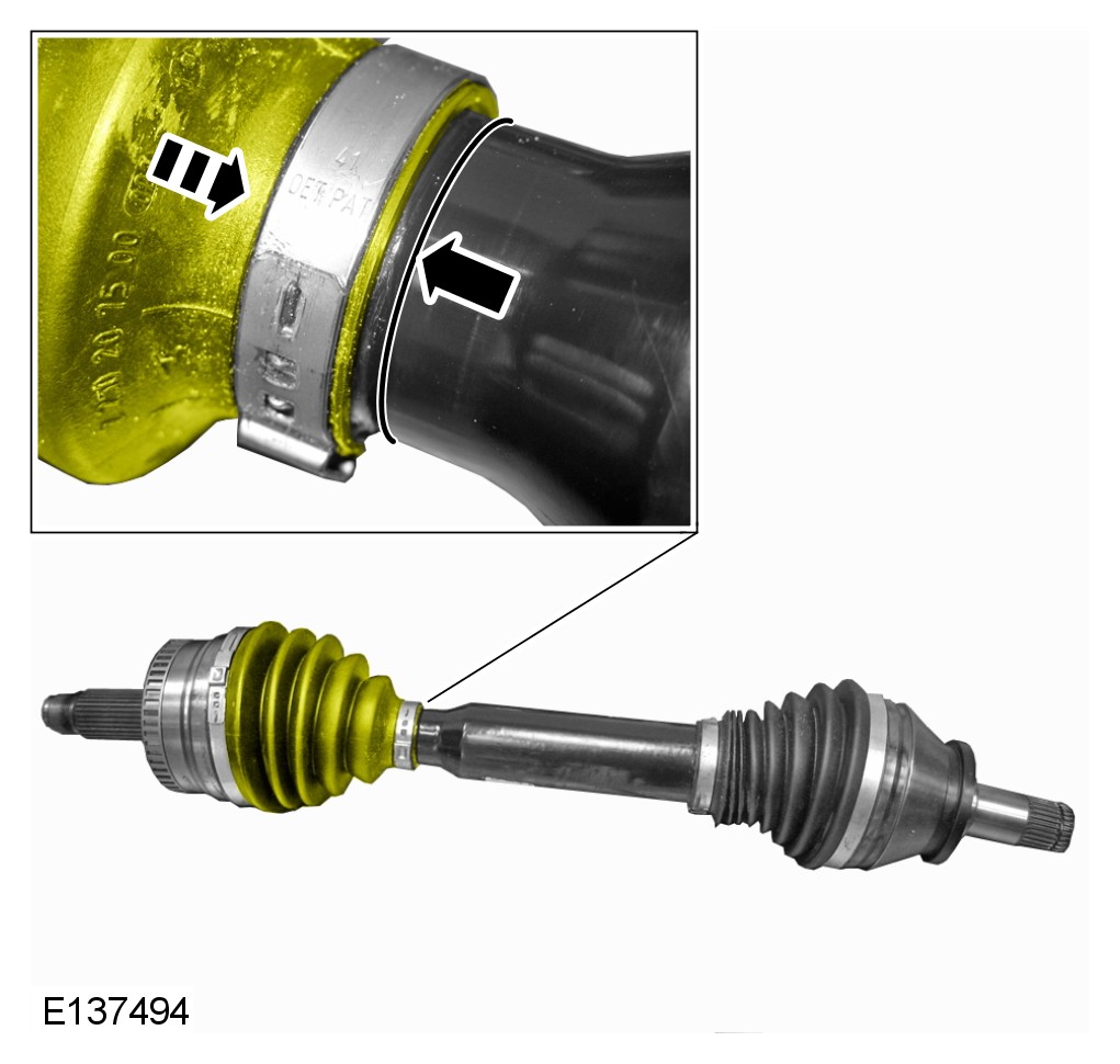 CAUTION: Make sure the CV boot is not pushed too far onto the drive shaft and the recess is exposed, failure to follow this instruction may result in damage to the component.