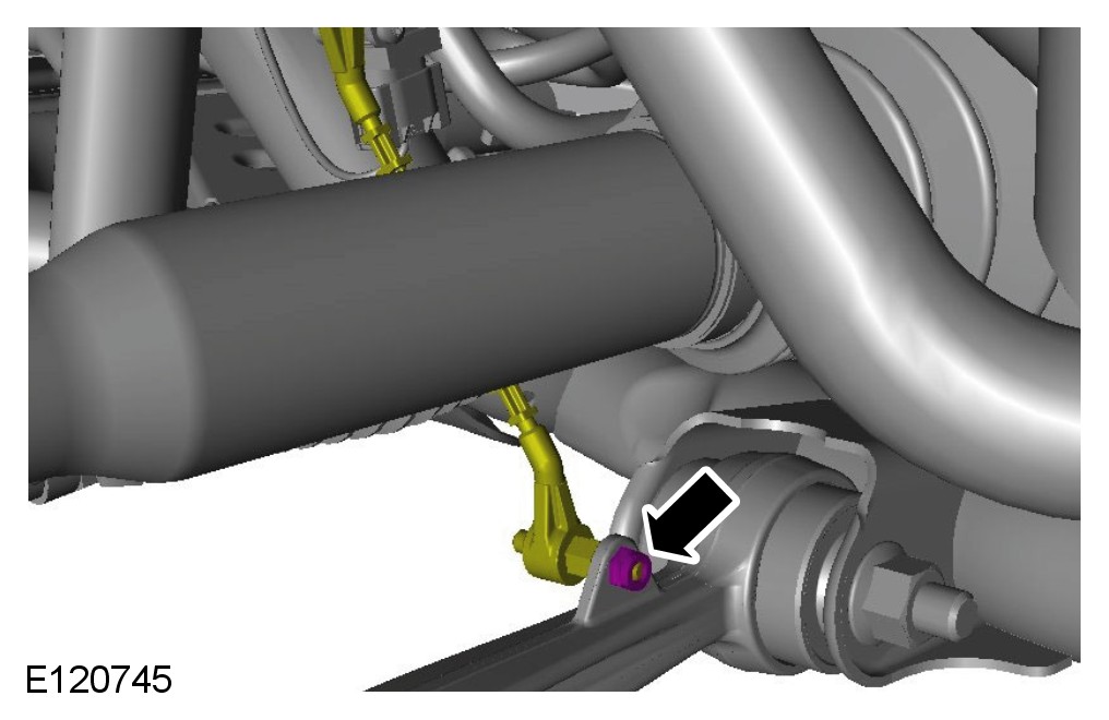 - Tighten the lower arm nut and bolt to 165 Nm (122 lb.ft) plus a further 90 degrees.