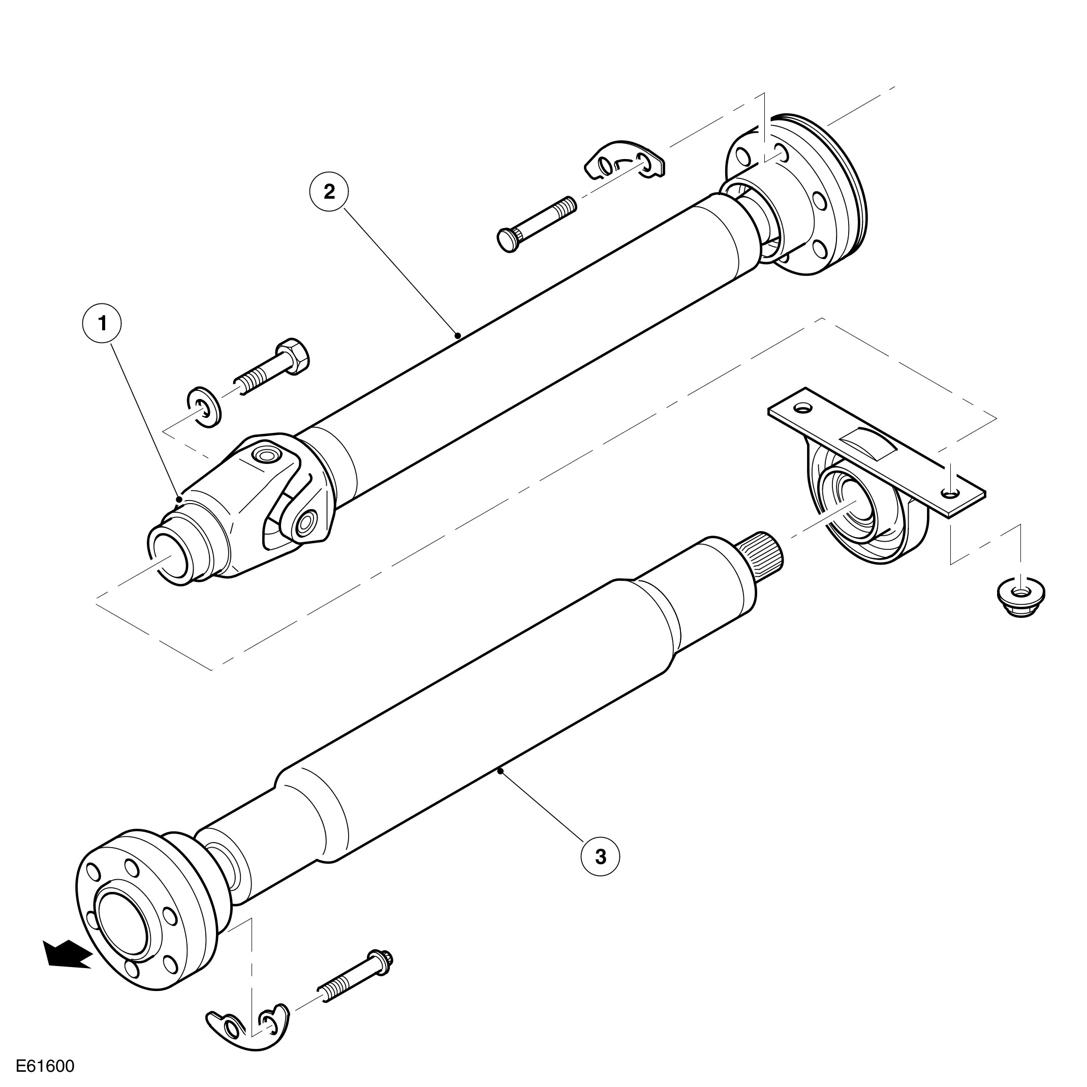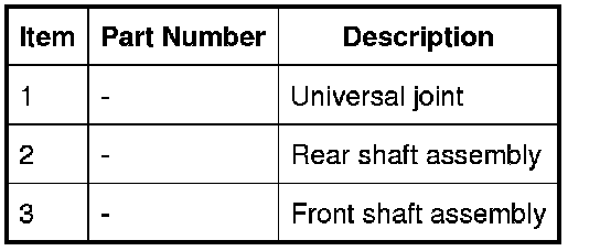 The rear driveshaft is a 2-piece unit with a universal joint connecting the rear shaft assembly to the front shaft assembly. This configuration allows for angular deviations of the driveshaft due to acceleration and braking.