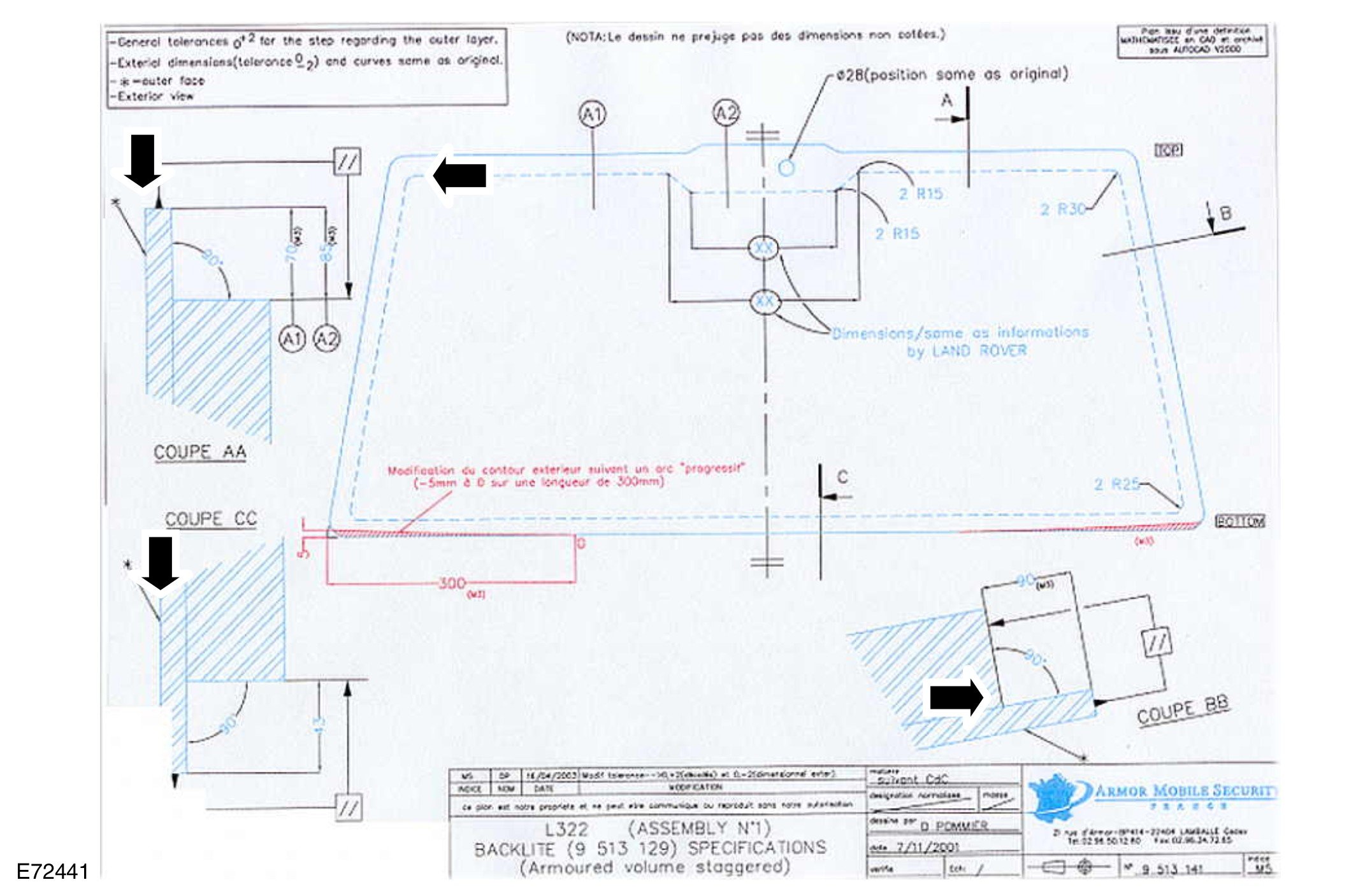 Liftgate window glass specification drawing