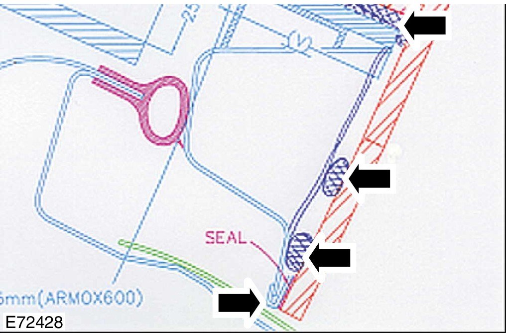 4 Fit the adhesive rubber seal (AMS Ref: 12591) on the side of the tailgate (5)