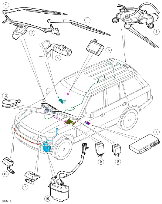 Diagnostic information for the wiper system is available and can be retrieved using the Land Rover approved diagnostic system.