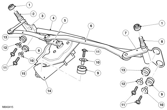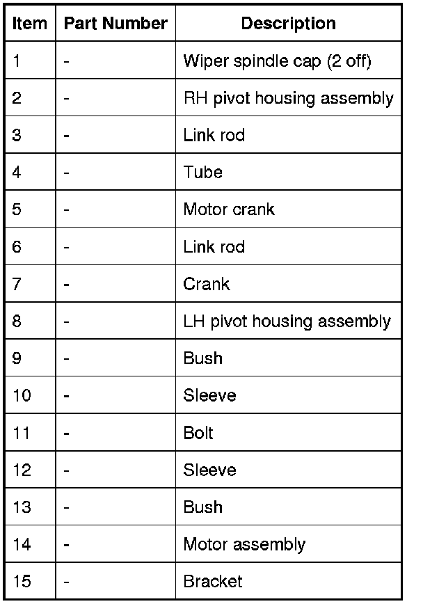 The wiper linkage and motor assembly are available as separate components. The wiper linkage differs between LH and RH drive models. The wiper motor is common to LH and RH drive models.