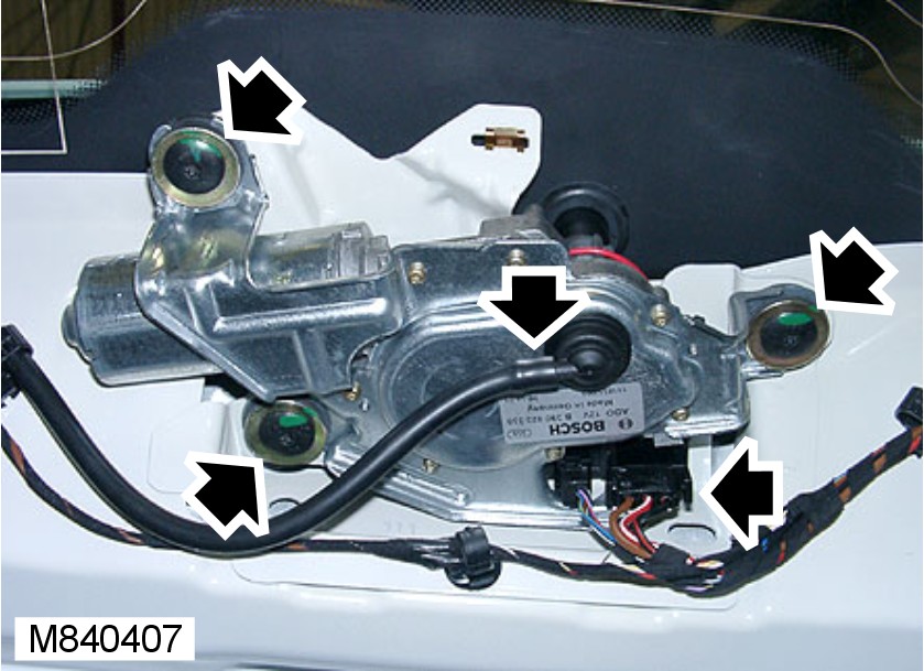 - Release and collect the 3 mountings from the rear window wiper motor.