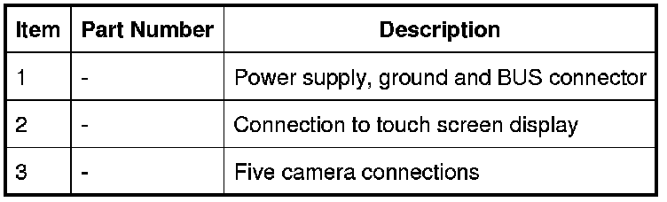 The control module gathers the camera images and analyses and alters them by adjusting perspectives and applying corrections. The resulting processed images are then relayed to the touch screen display via the NTSC (National Television System Committee) analogue video line.