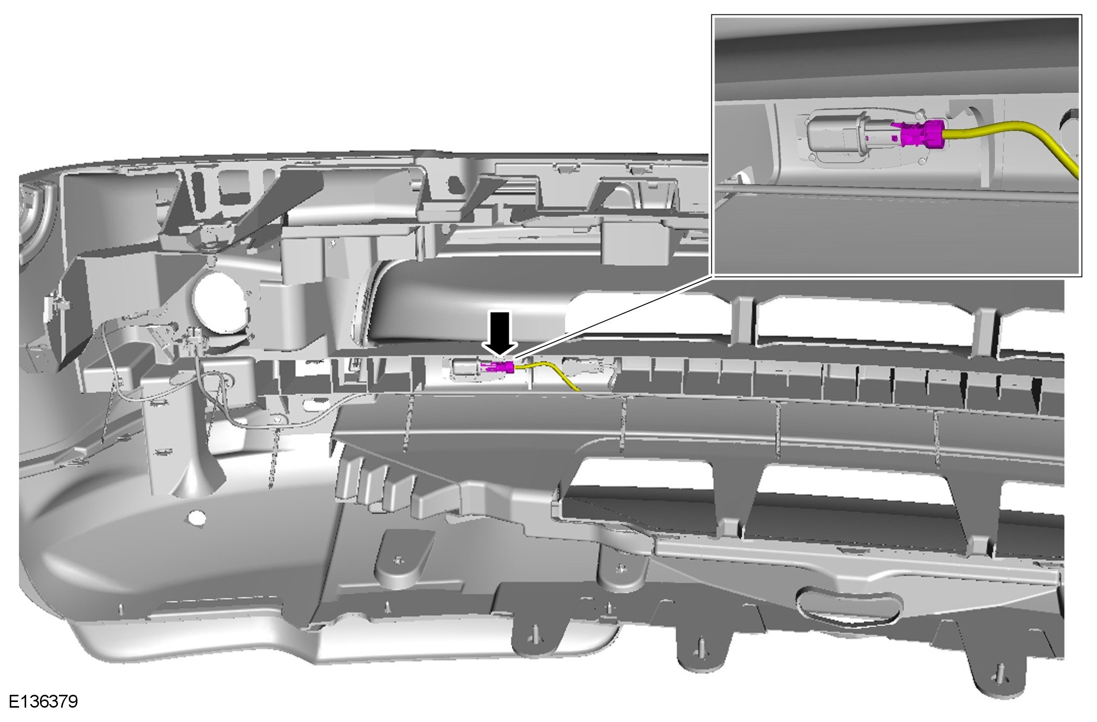 Using suitable tie straps, secure the camera overlay wiring harness to the bumper wiring harness.