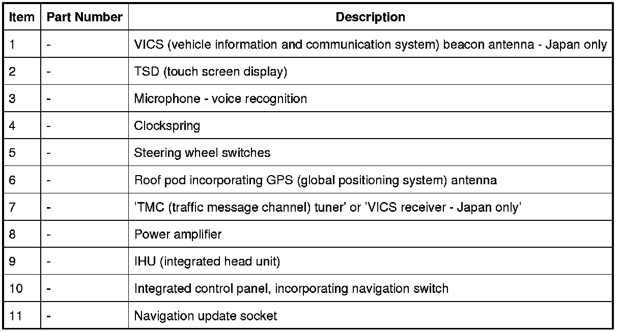 In addition to the GPS (global positioning system) antenna the roof mounted pod incorporates various antennas to support the vehicle's audio and telephone systems. The GPS antenna is connected to the Touch Screen Display unit.