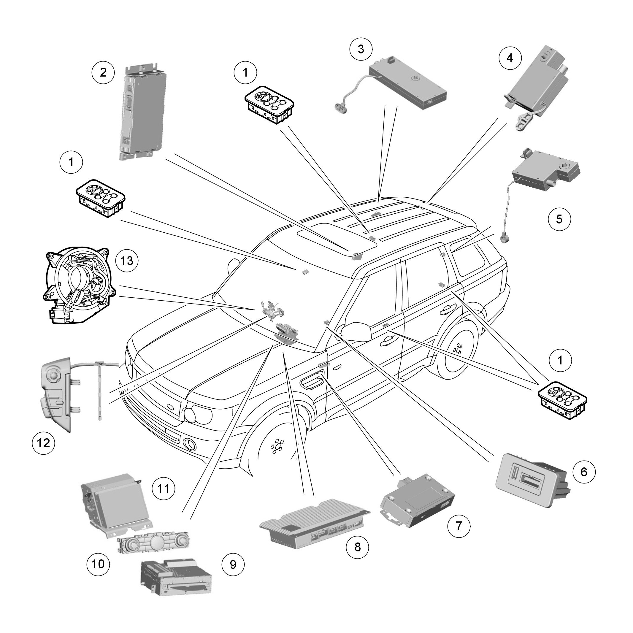 There are four remote audio control modules, two in the rear doors incorporating the rear window switches and two in the rear load space each side of the third row seats.