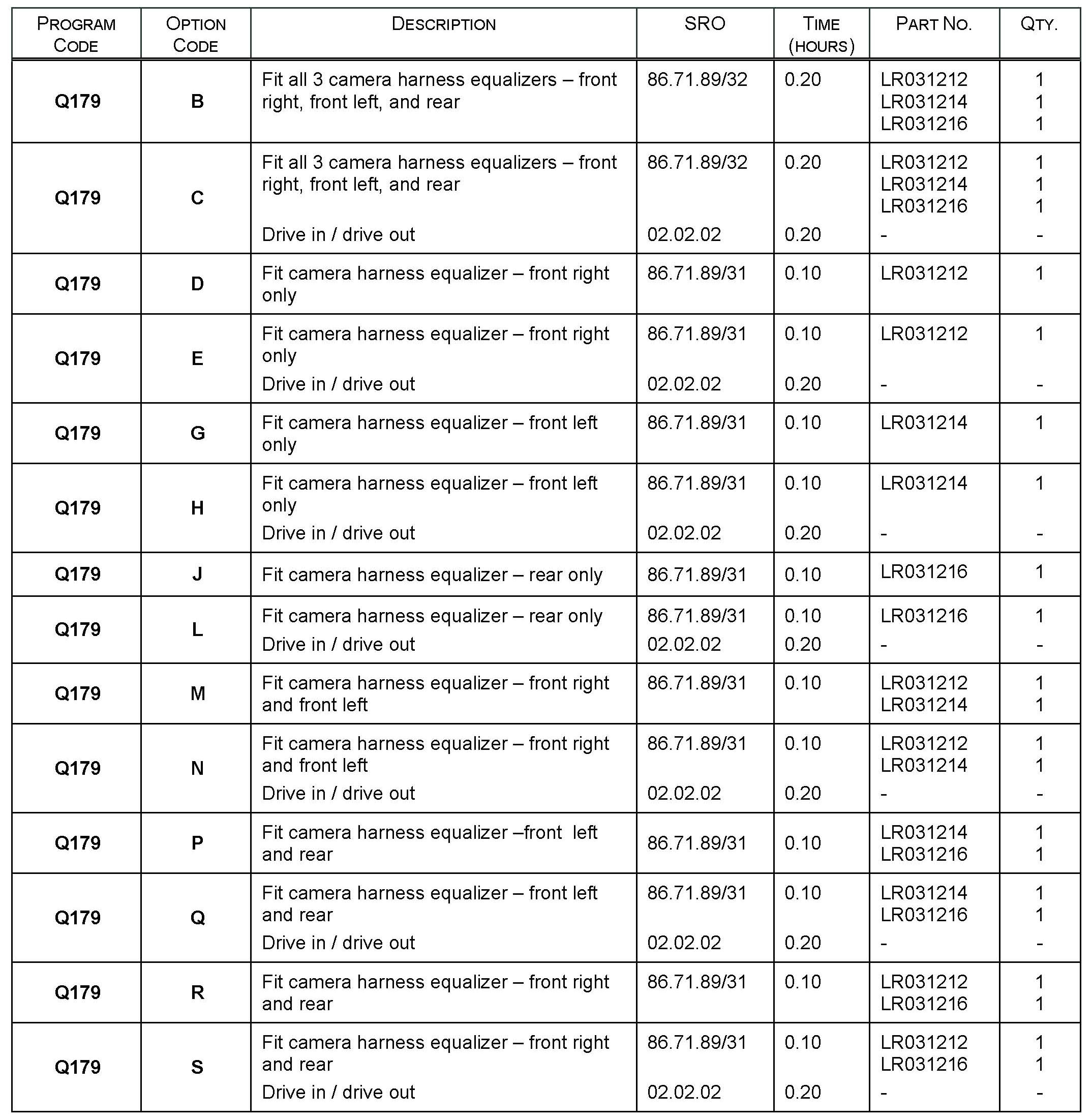 Warranty claims must be submitted quoting Program Code 'Q179' together with the relevant Option Code from the table. The SRO and part information listed have been included for information only.