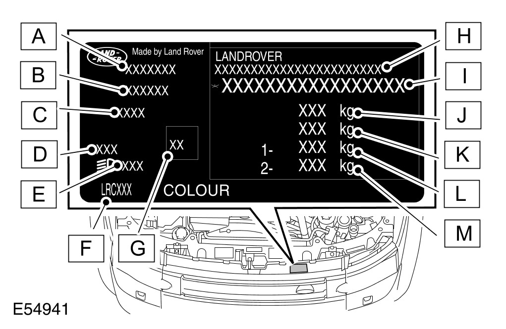 - 1. Stamped on the side of the RH longitudinal member, rearward of the body front mounting.