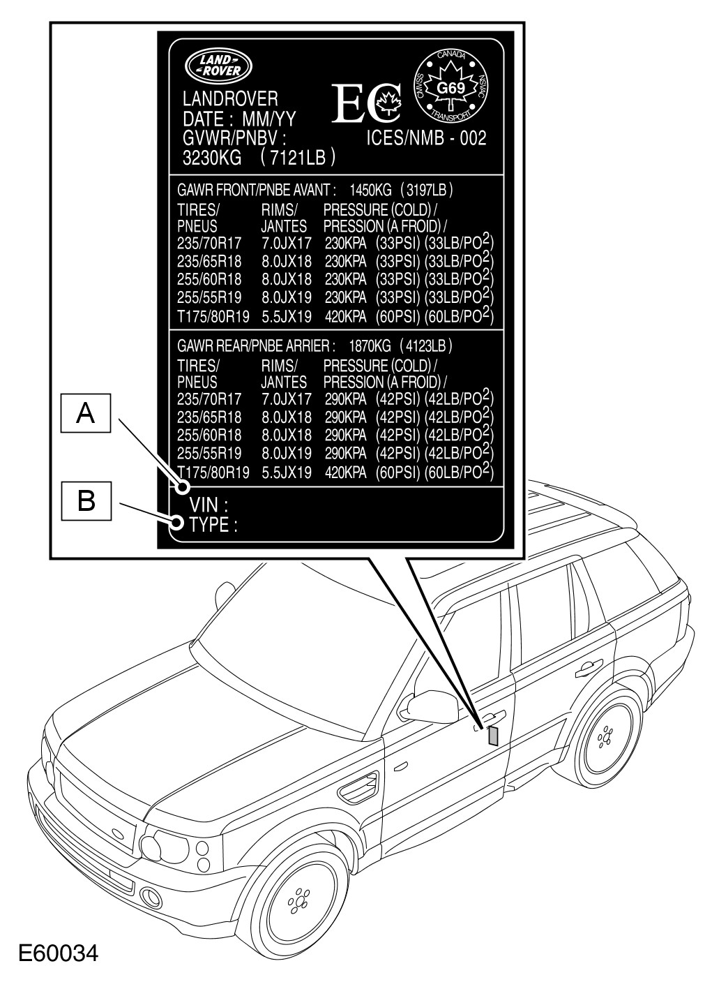 - 4. NAS/Canada - On the Tire Data/Specification label attached to the front of the LH B-pillar.