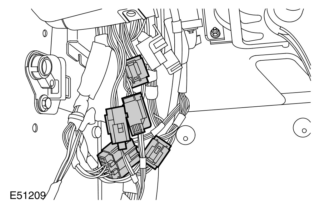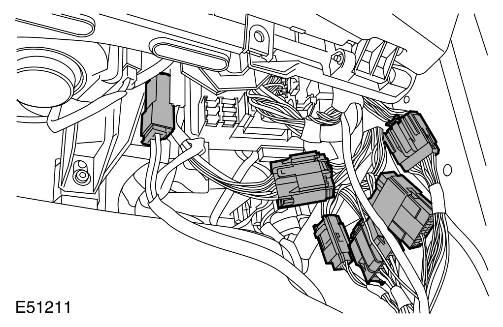 29 Disconnect the 5 electrical connectors from the driver side lower A-pillar.