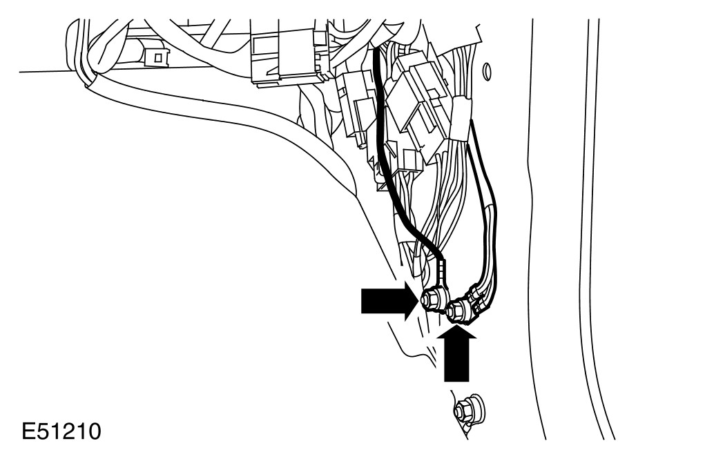 9 Connect the ground cables to the passenger side lower A-pillar.