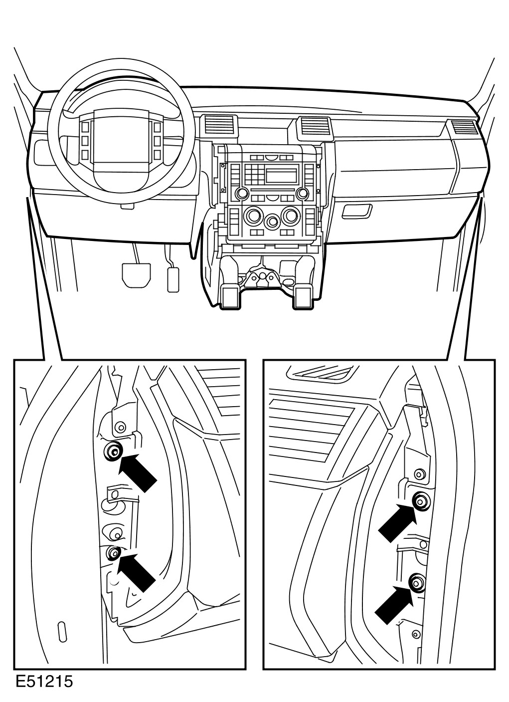 18 Install the instrument panel upper section to body bolt and tighten to 10 Nm (7 lb.ft).