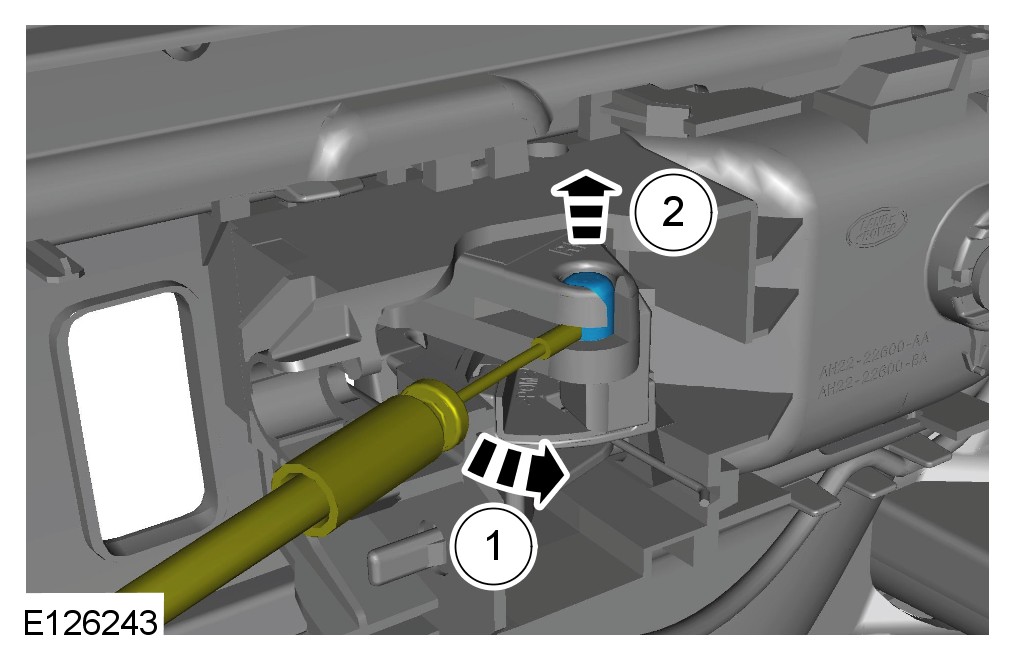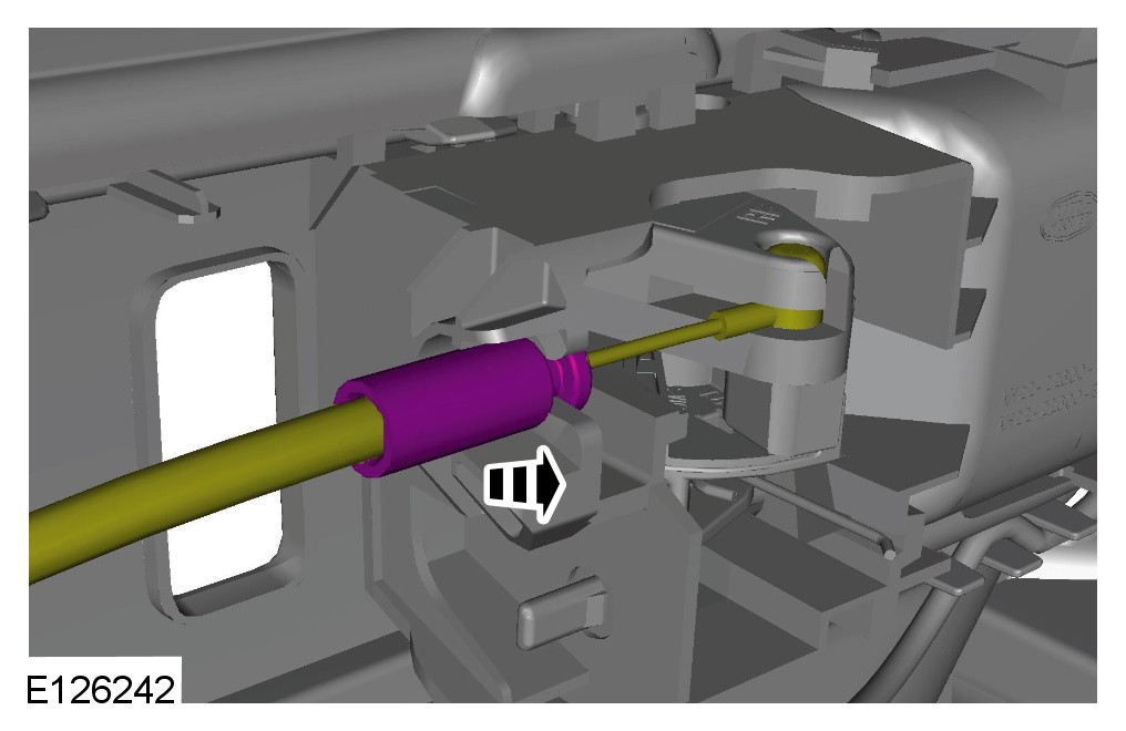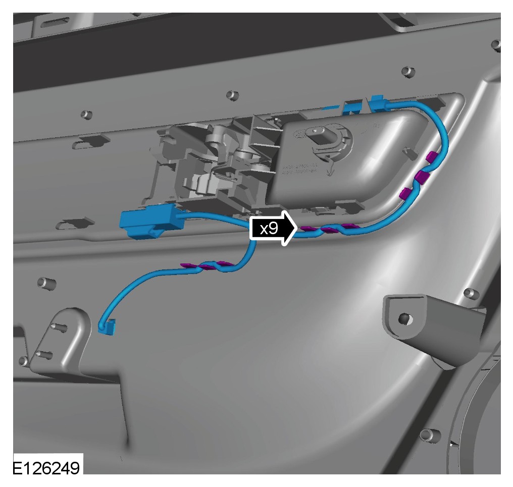 CAUTION: Make sure that the release cable is removed from the door trim panel using the plastic fixing and not using the cable.