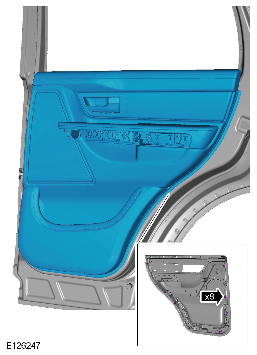 2 Remove the rear door trim panel.