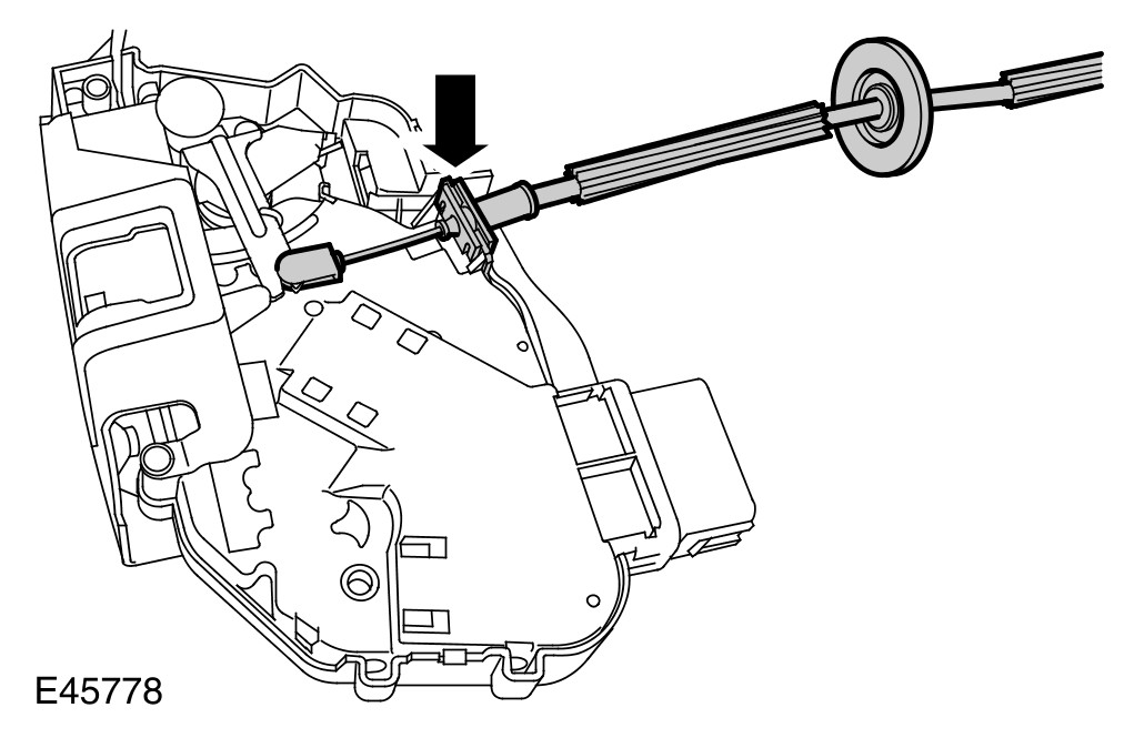 3 Confirm the interior door release cable is correctly installed to the interior door handle
