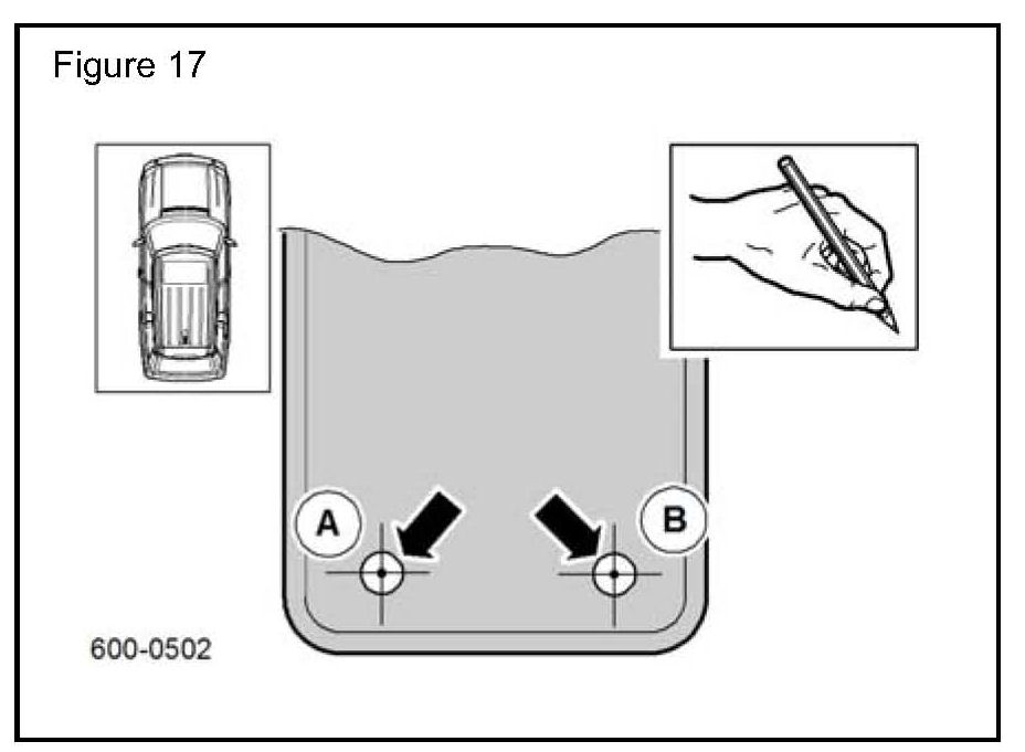3. Mark the center of the floor mat holes ('A' and 'B') onto the vehicle carpet. (Figure 17)