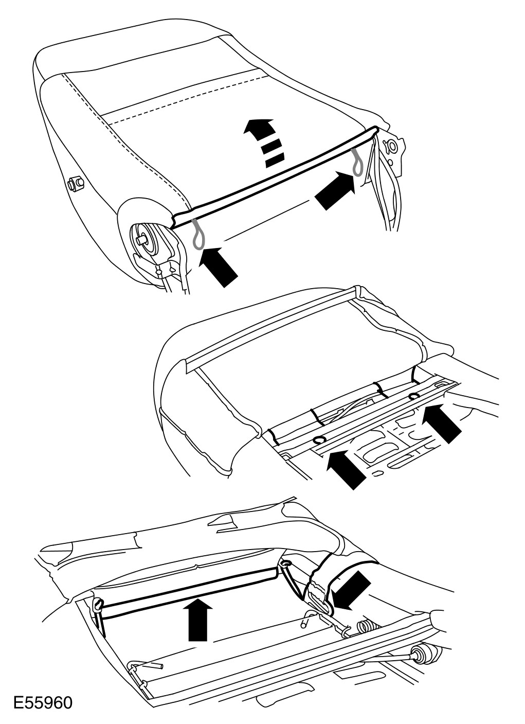 10 Remove the front seat backrest cushion and cover from the front seat frame.