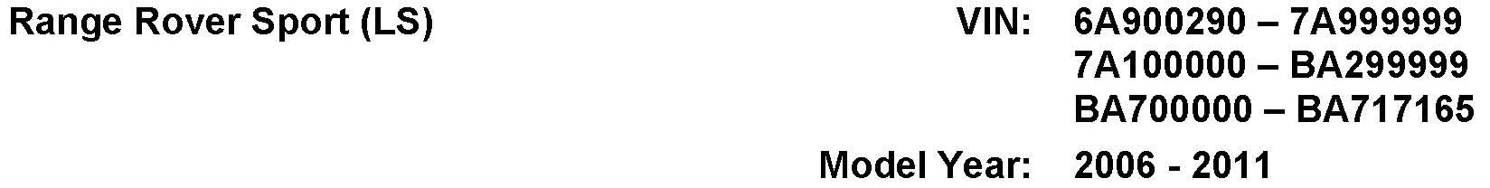 AFFECTED VEHICLE RANGE: