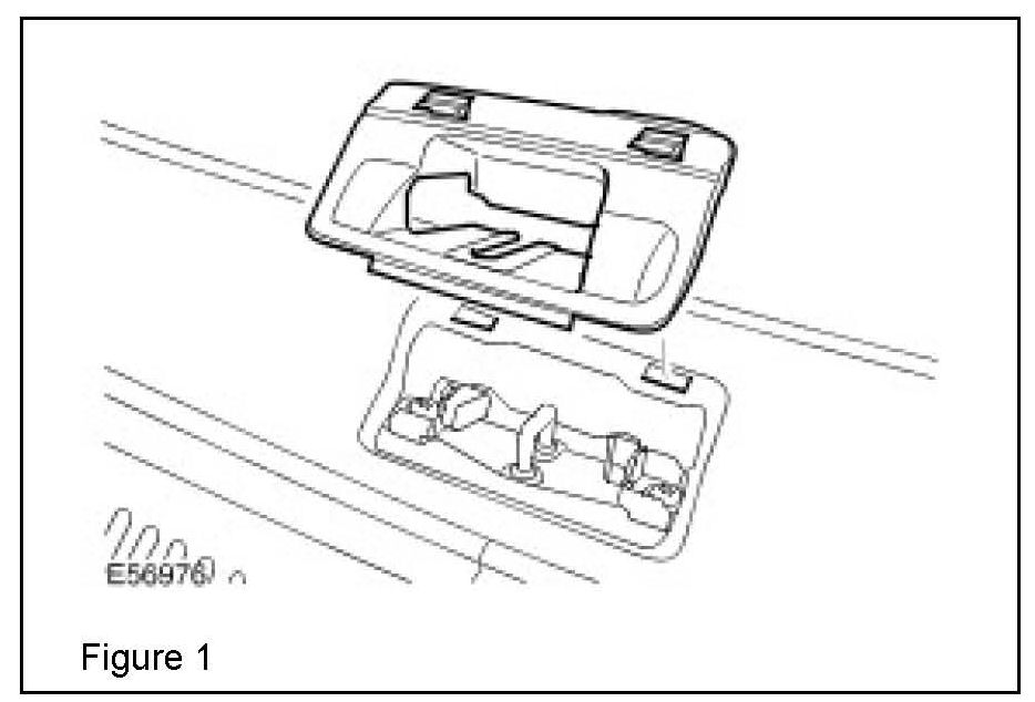 2. Remove liftgate striker cover: (Figure 1) Release the two clips