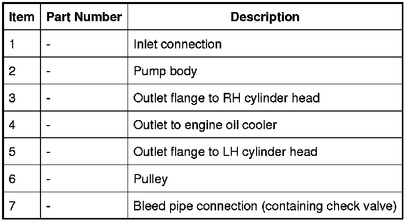 Two coolant outlet flanges attach the coolant pump to the front of the cylinder heads. A pipe connects a further coolant outlet to a pipe from the engine oil cooler. A bleed connector is installed in the front of the coolant pump, adjacent to the coolant inlet connection from the thermostat. A check valve is incorporated into the bleed connection.