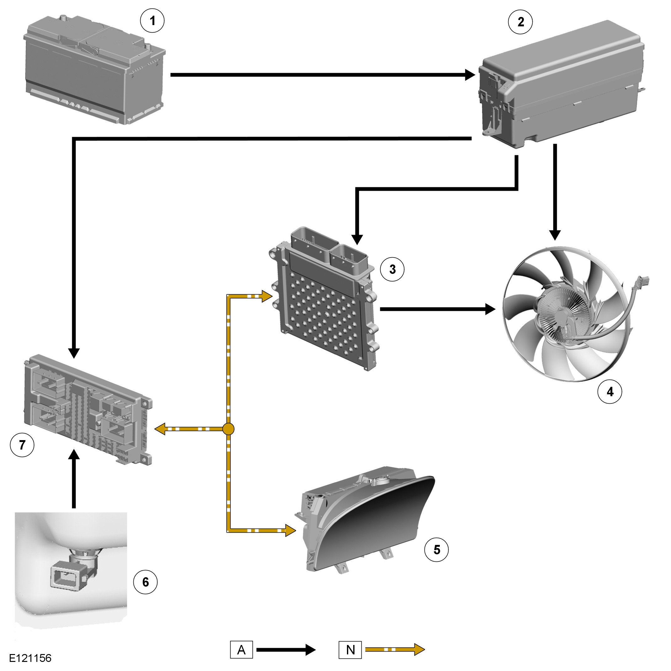 - A/C (air conditioning) system condenser cooling fan demand