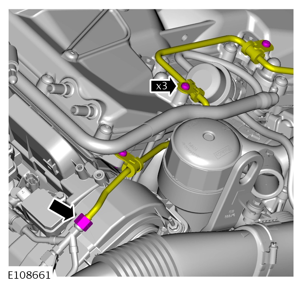 Fuel rail high-pressure fuel pump cover shown removed for clarity.