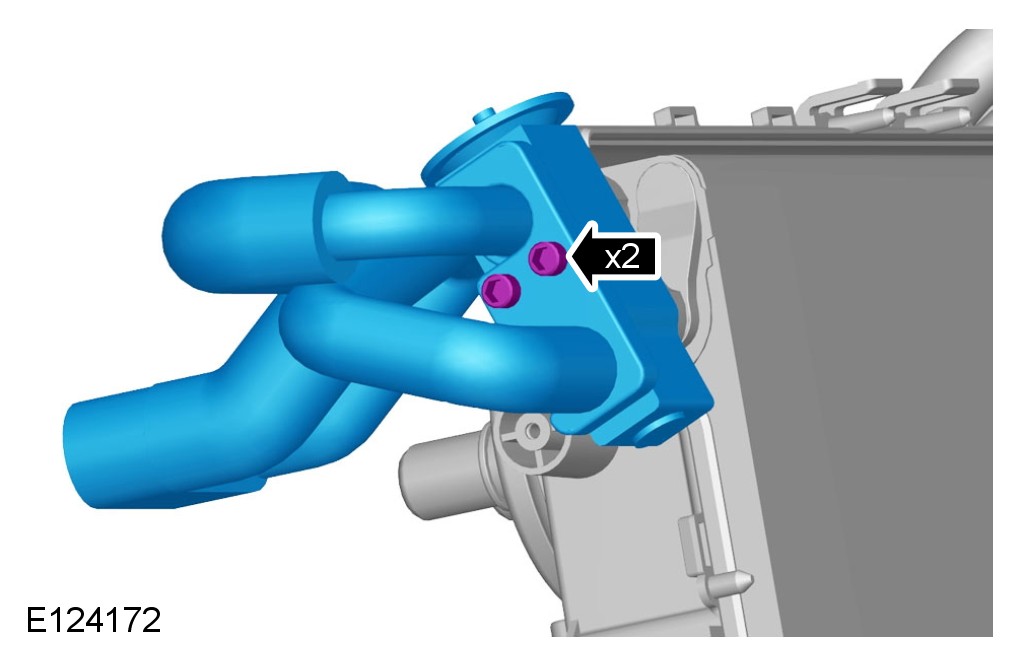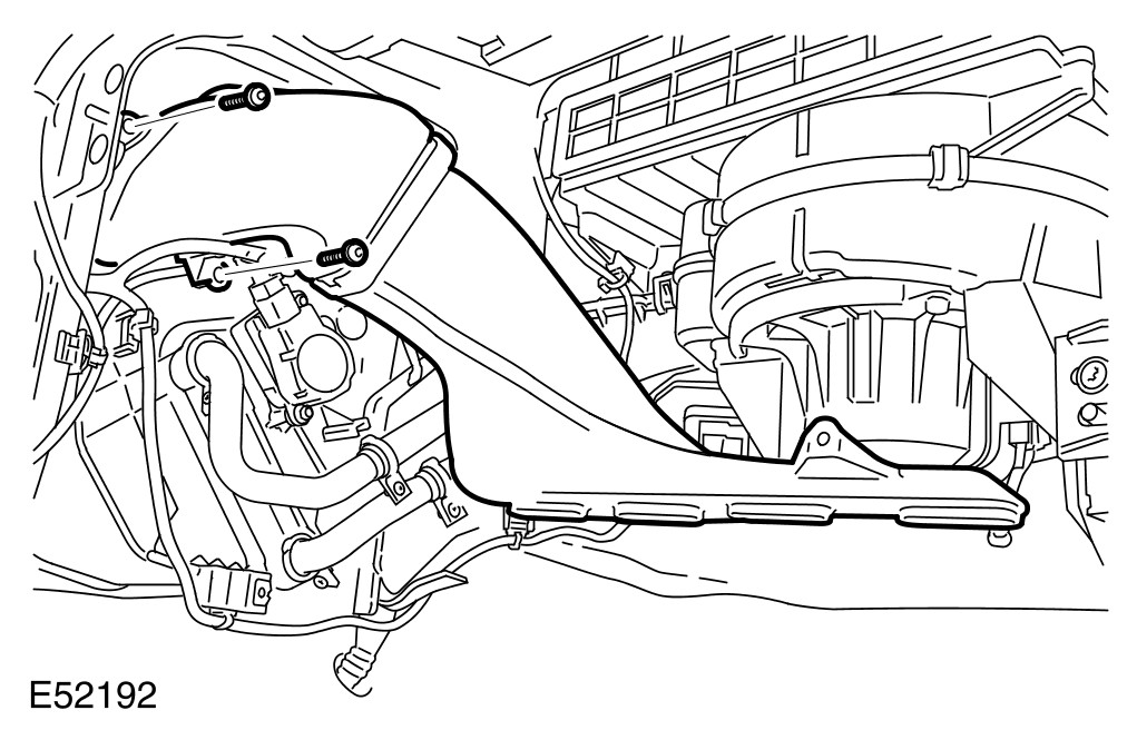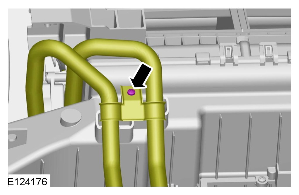 8 Passenger side: Install the heater housing to bulkhead Torx bolt and tighten to 6 Nm (4 lb.ft).