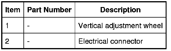 Two front fog lamps are located in apertures in the front bumper. Each lamp is secured in the bumper with three screws. The fog lamp has an adjuster wheel which is accessible by removal of the applicable headlamp assembly and is used to set the fog lamp to the correct alignment.