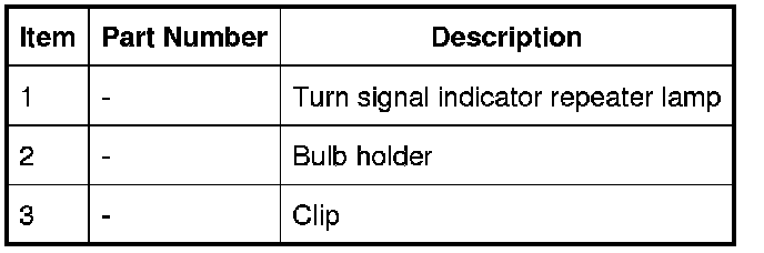 The repeater lamps are located in the driver and passenger doors, below each door mirror. The lamps are clipped into an aperture in the door panel and can be removed by sliding rearwards and releasing the front edge of the lamp from the door. The repeater lamps use a 5W capless bulb which is located in a holder.