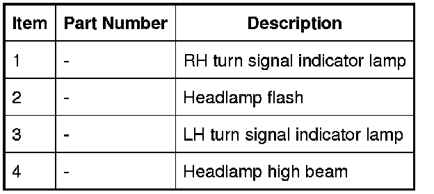 The steering column multifunction switch is located on the left hand side of the steering column and controls the following functions: