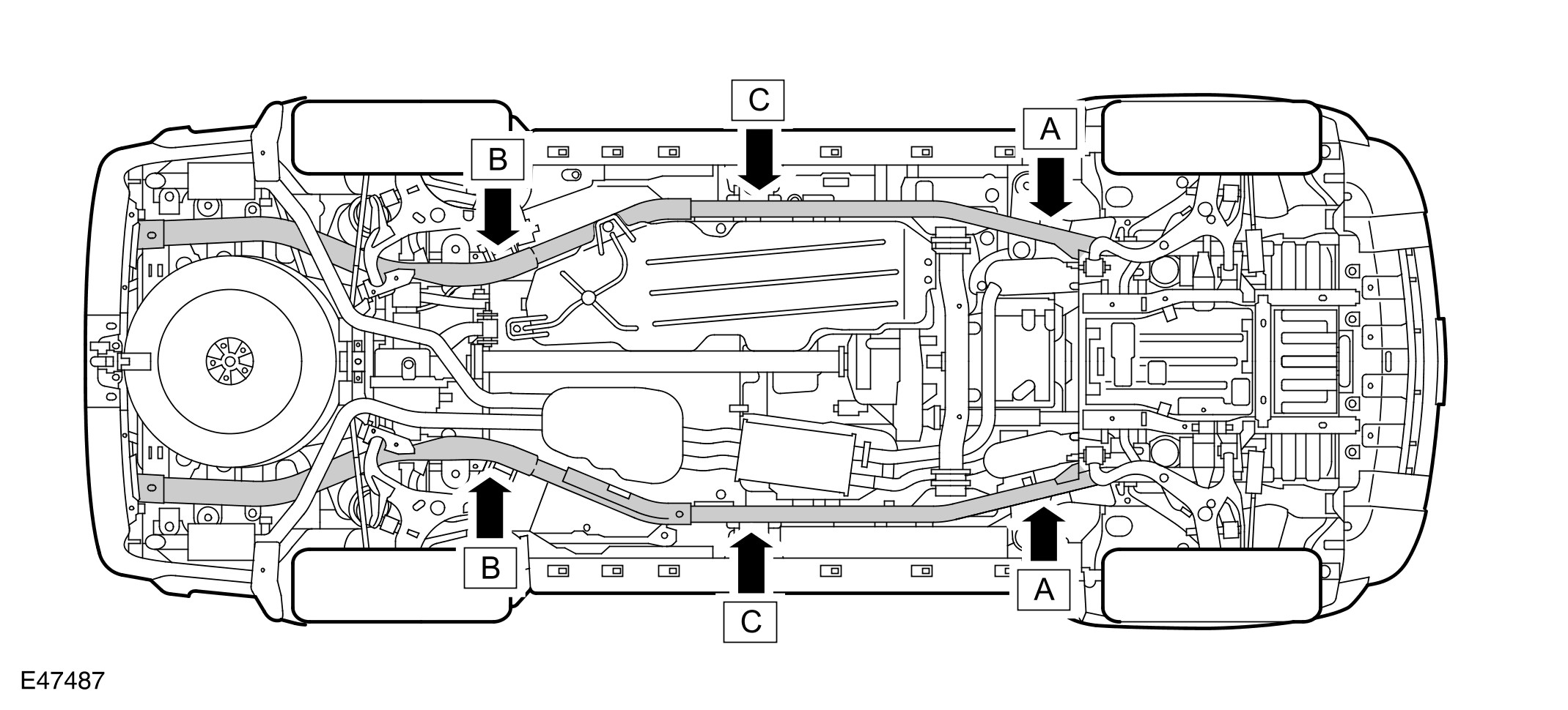 - Front and rear wheels - ONE SIDE - position lifting pad of jack beneath longitudinal member on the side to be raised at Point 'C'