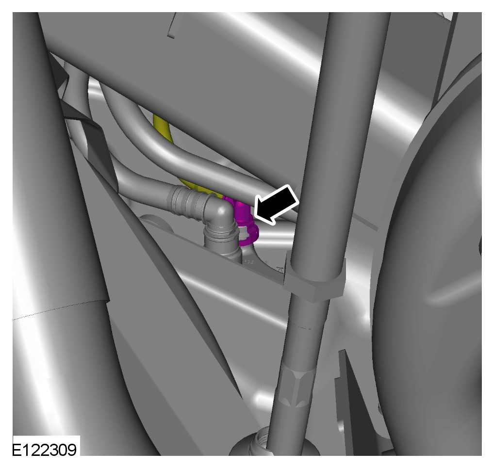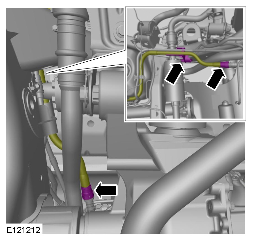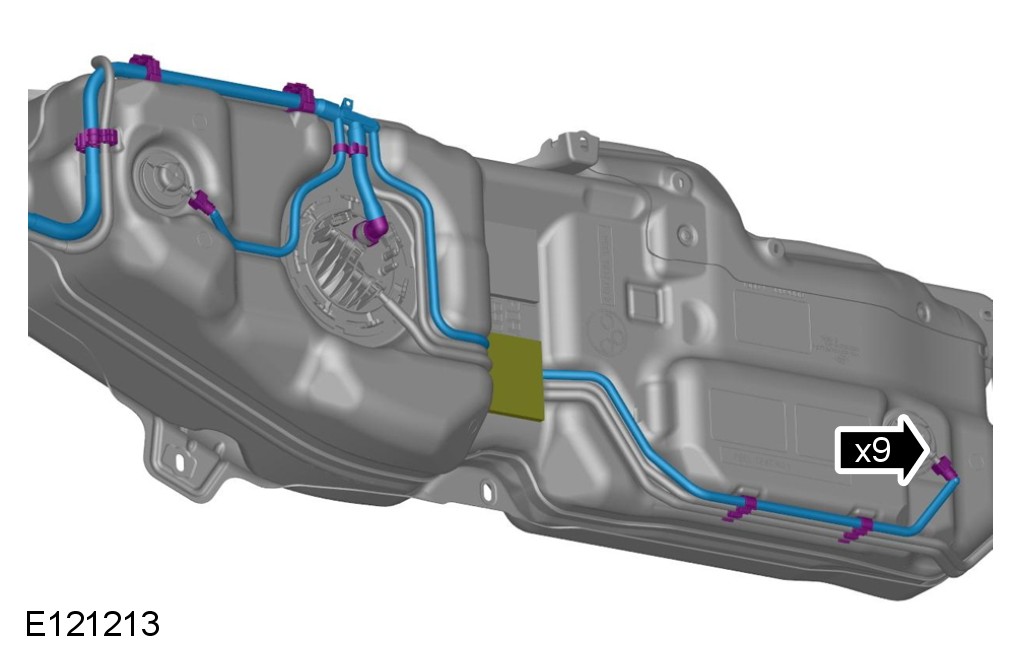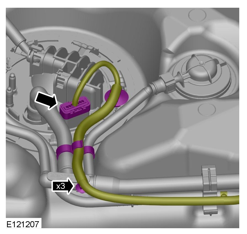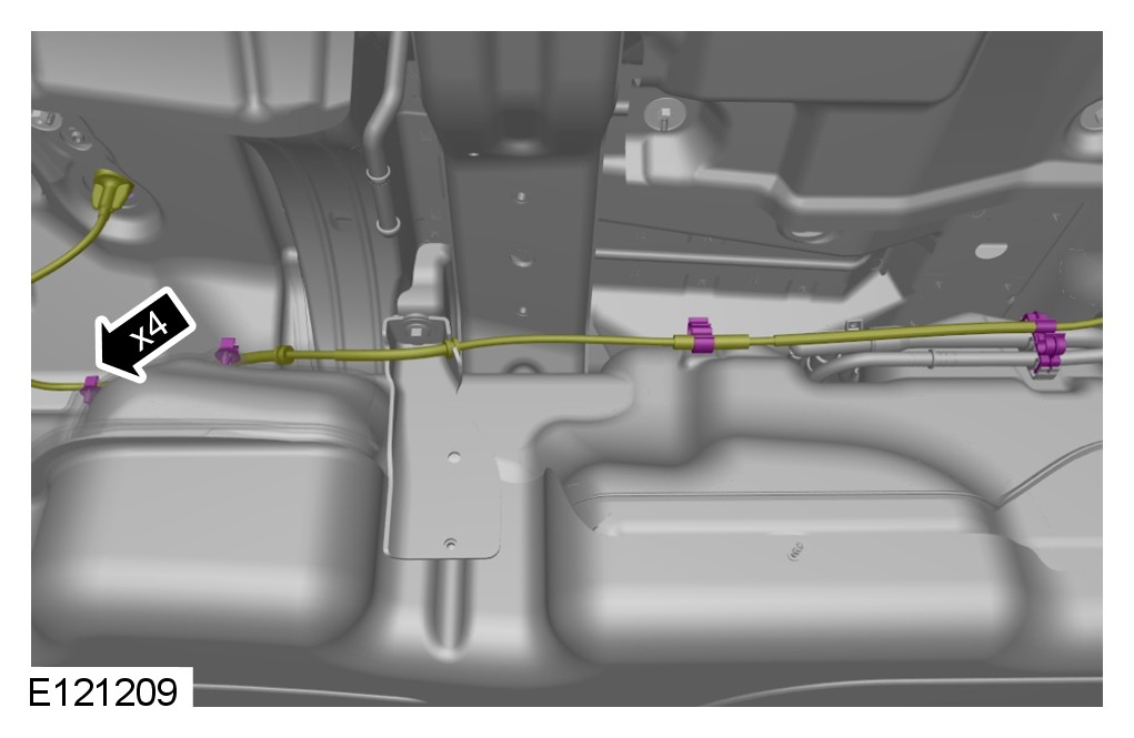 CAUTION: Position the breather and vent hoses through the vehicle body during the fuel tank removal.