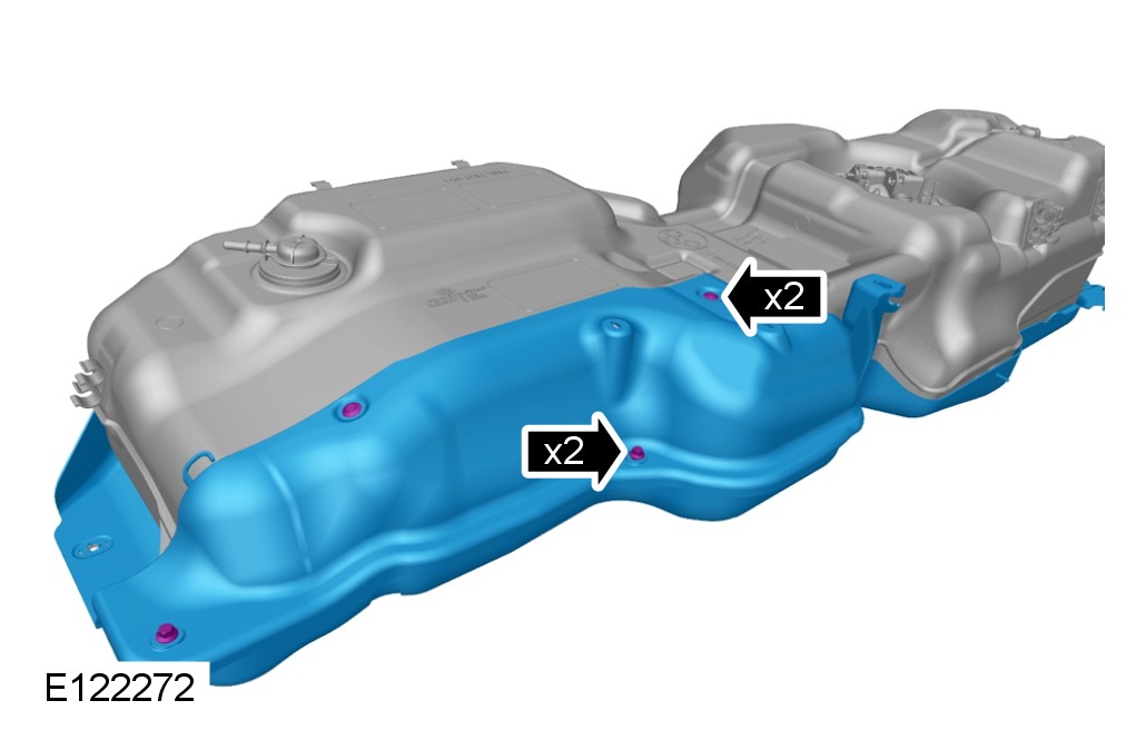 4 Using a suitable transmission jack, lower the fuel tank sufficiently only to access the top of the fuel tank.