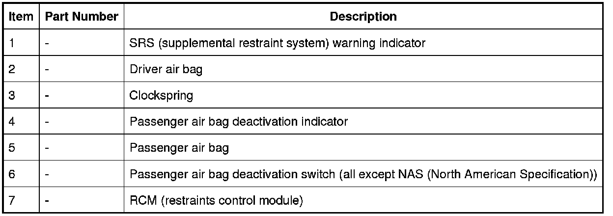 - On NAS vehicles, an occupant classification system provides signals to the RCM (restraints control module) to allow the correct arming of the passenger air bag and corresponding indicator.