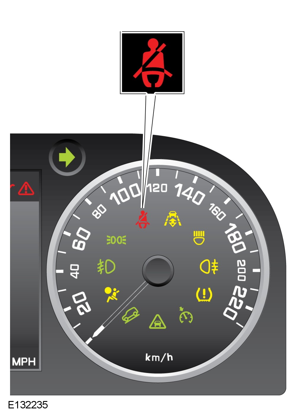 The belt minder function can be enabled and disabled using the driver safety belt switch. The instrument cluster changes the state of the belt minder function if, within 60 seconds of the ignition being in power mode 6 'on' , the driver safety belt is fastened and unfastened nine times. Successful completion of the change is indicated by a single chime and the safety belt warning indicator flashing five times, at 2 Hz. The belt minder function can also be enabled and disabled using an approved Land Rover diagnostic system.
