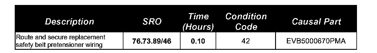 Should a new safety belt pretensioner be required, refer to the Repair Procedure detailed in this bulletin to properly route and secure the pretensioner wiring during pretensioner installation.
