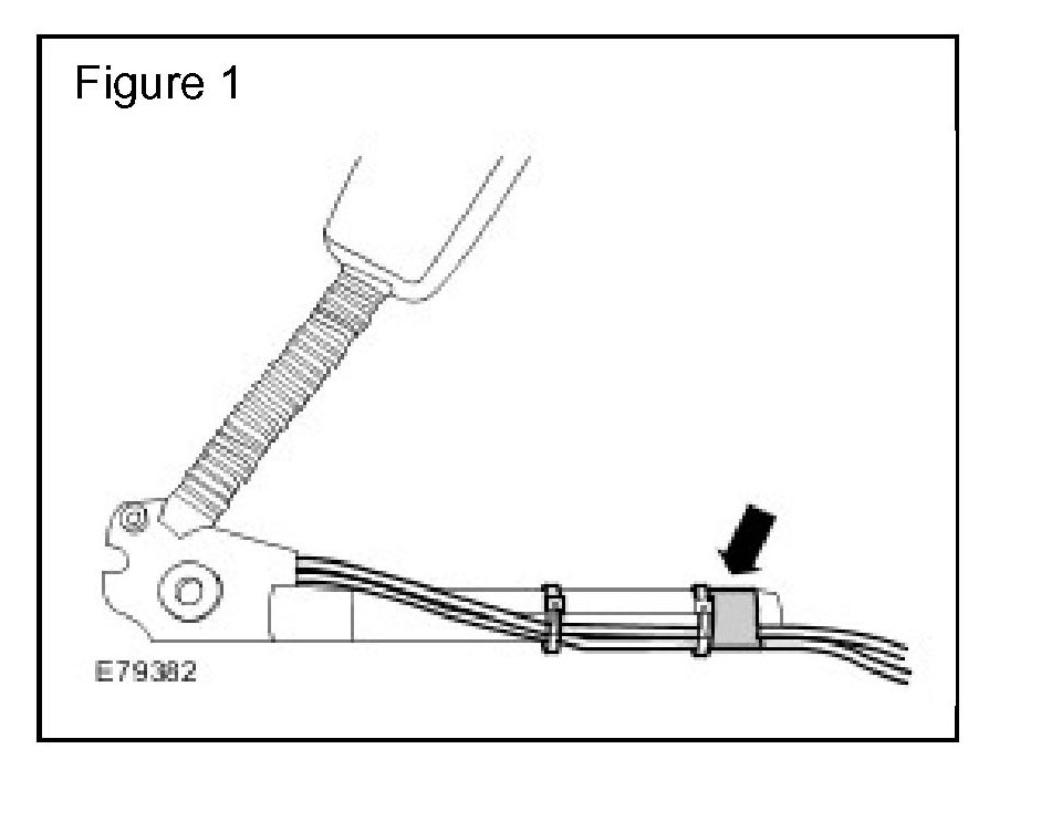4. Using black fabric tape, secure the wiring to the pretensioner tube, ensuring the tape does not extend beyond the end of the tube. (Figure 1)
