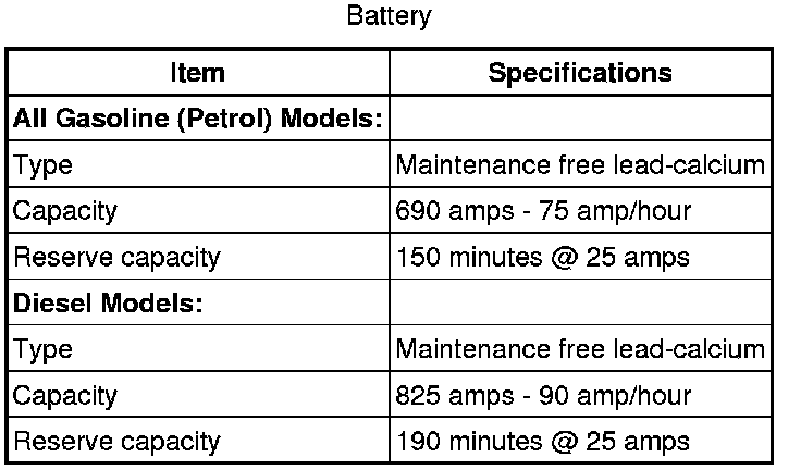 CAUTION: The vehicle status and battery condition must be established before attempting battery disconnect/connect. Reference must be then made to the following table to establish the relevant procedure to be followed.