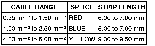 For ease and speed, some of the pre-terminated wiring harness(s) may already have the insulation partly stripped at the splice end. If the repair requires insulation to be stripped from the cable, refer to the Relationship Table for the correct length of insulation to be stripped.