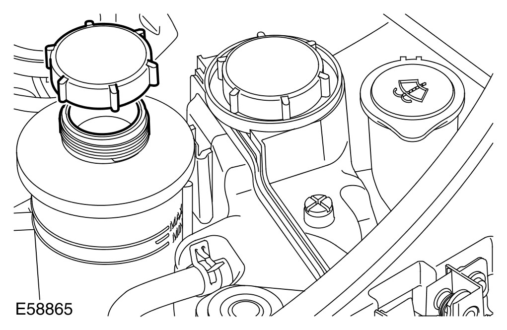 22 On completion of the test stop the engine, disconnect the battery ground cable and siphon the steering fluid from the reservoir.