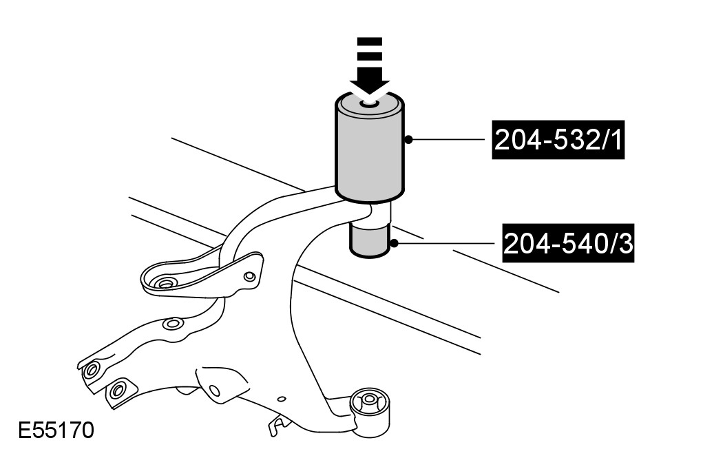 8 Using the special tools, remove and discard the lower arm rear bushings.