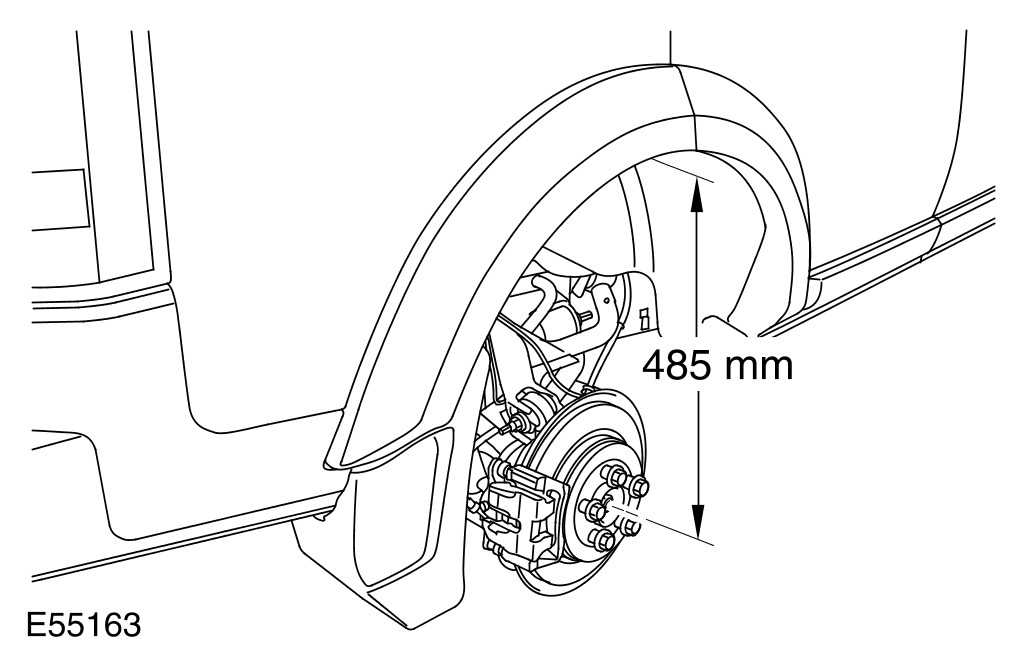 4 Set the height between the center of the halfshaft end and the edge of the fender trim to 485 mm (19.10'').