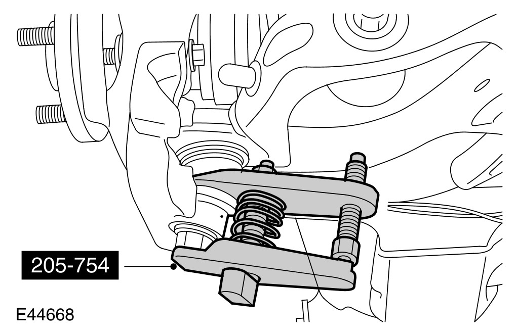 5 Using the special tool, release the lower ball joint from the steering knuckle.