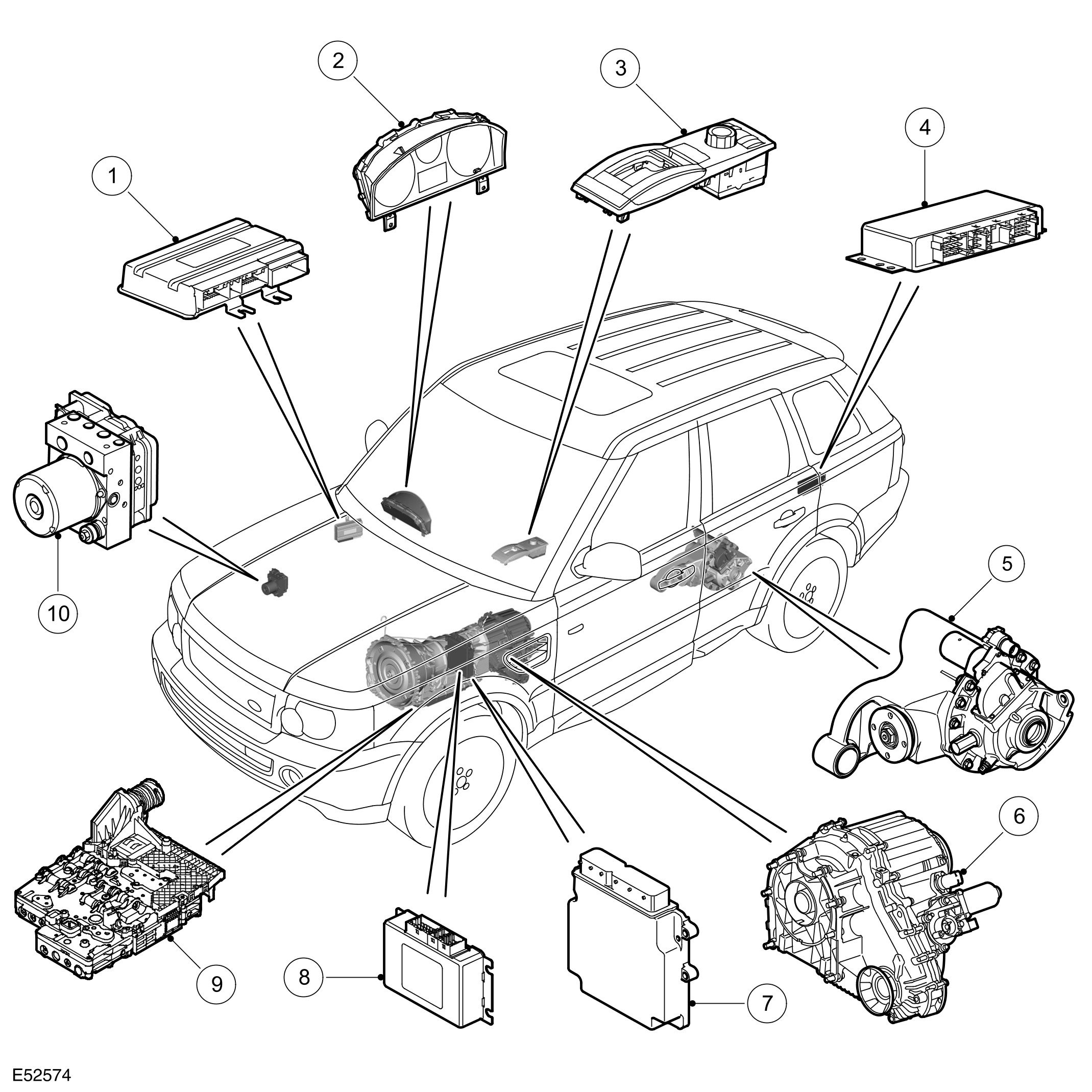 A Terrain Response control module is located below the rotary control. The control module detects the selection made on the rotary control and transmits a signal on the high speed CAN which is received by each of the subsystem control modules.