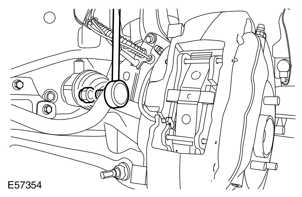 CAUTION: Note the position of the hardened steel washer. The hardened steel washer must be installed between the stabilizer bar link and the upper arm. Failure to follow this instruction may result in damage to the vehicle.