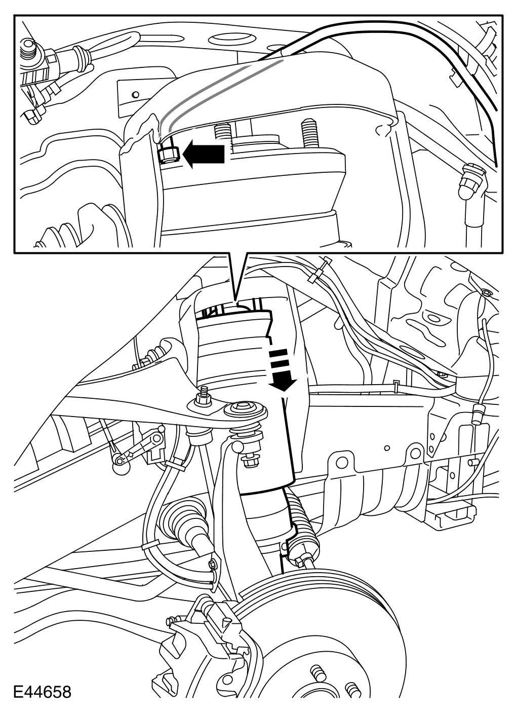 Release the shock absorber and air spring assembly and disconnect the air line.